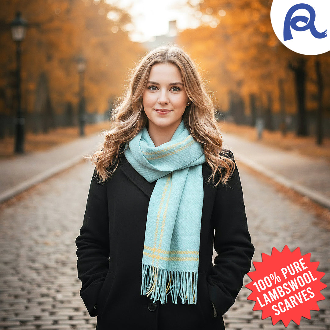 When grey skies and heavy coats leave you feeling drained, it’s the perfect time to wrap yourself in this super-soft and refreshing Mint Border Houndstooth Lambswool Scarf.